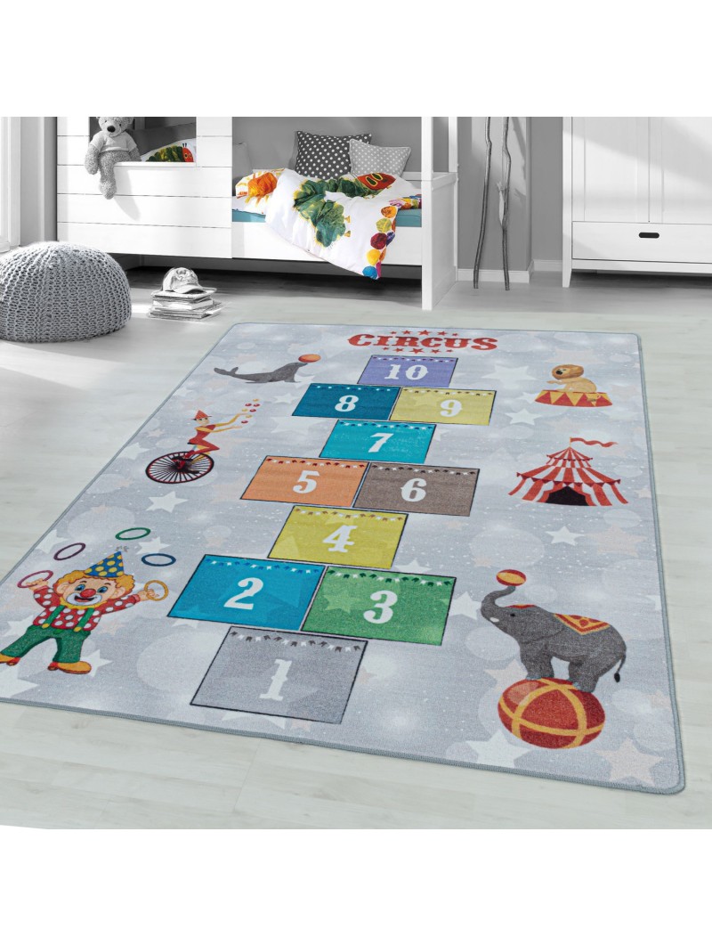 Kinderkleed, Hemel en Hel, Grijs, Babykamerkleed, Latex achterkant, 100% Polyamide, Poolhoogte: 8 mm, 1200 g (±5%)m², Latex achterkant