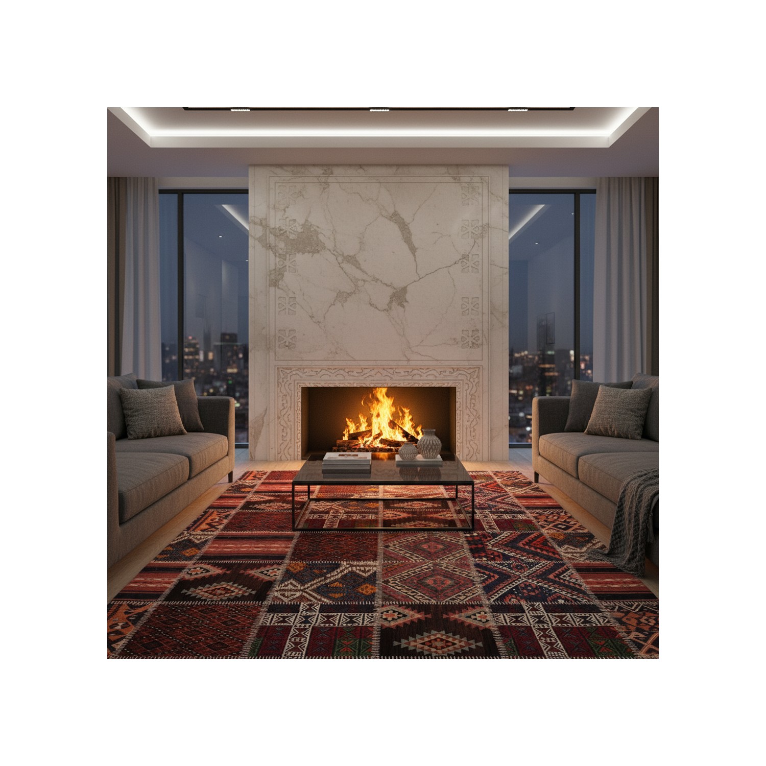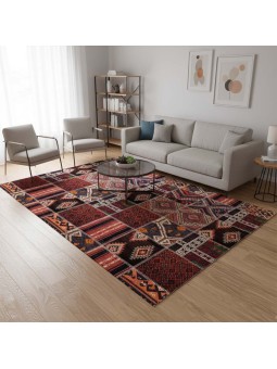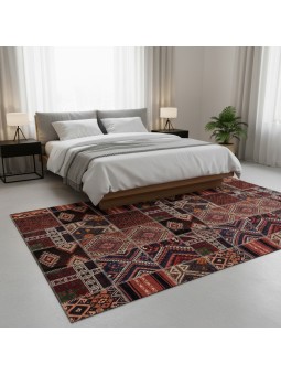 Dit patchwork vloerkleed met traditionele kilimpatronen en warme rode tinten brengt een authentieke en levendige sfeer in huis. De mix van Chenille & Katoen zorgt voor een zachte en comfortabele structuur. De hoogwaardige digitale print garandeert blijvende kleurintensiteit en scherpe details. Dankzij de antislip rug, wasbaarheid en vloerverwarmingsgeschiktheid is het ideaal voor woonkamer, hal of slaapkamer.