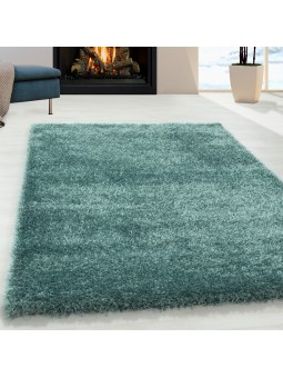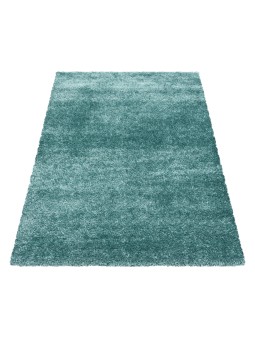 Modern zacht hoogpolig vloerkleed 50 mm in aquablauwe kleur