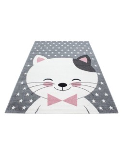 Tapis pour enfant, Motif de chat mignon, Couleur Rose, Tapis pour Chambre d'enfants, dos en jute, 100 % PP. Friese, Hauteur des poils: 11 mm, 211.000 Points, 2500 gr (±%5)M2, Dos en Jute