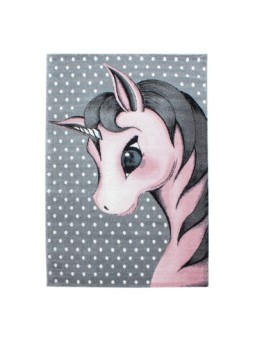 Tapis pour enfant, Motif de licorne, Couleur Rose, Tapis pour Chambre d'enfants, dos en jute, 100 % PP. Friese, Hauteur des poils: 11 mm, 211.000 Points, 2500 gr (±%5)M2, Dos en Jute