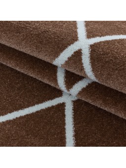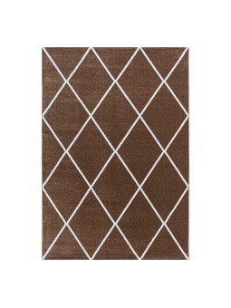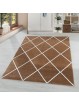 Woonkamer vloerkleed laagpolig ruiten patroon terra kleur