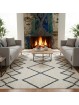 Dit vloerkleed in Scandinavische stijl heeft een strak geometrisch ruitpatroon in blauw op een crèmekleurige basis. Dankzij de digitale printtechniek blijven de kleuren langdurig mooi. De antislip onderlaag, het zachte oppervlak en het makkelijk te reinigen materiaal maken het ideaal voor woonkamer, slaapkamer, hal of kantoor. Een minimalistische en gezellige toevoeging aan uw interieur.