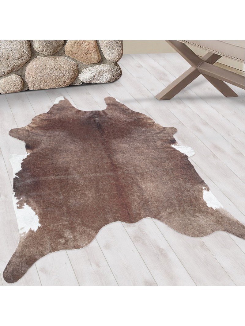Wasbaar vloerkleed, imitatie koeienhuid, bruine kleur, vloerkleed voor de woonkamer
