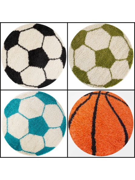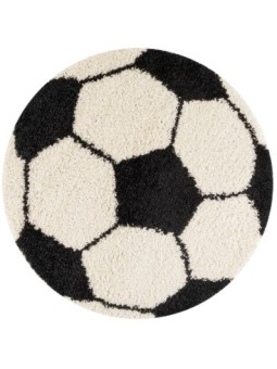 Denna barnmatta med fotbollsmotiv ger rummet en lekfull och modern touch. Dess runda form och originella mönster gör den till ett perfekt dekorativt element för att skapa ett varmt och roligt utrymme.