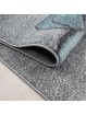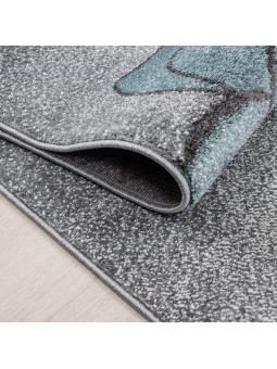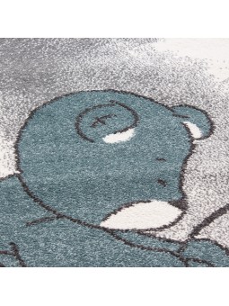 Barnrumsmatta med björn som fiskar efter stjärnor och moln, gråvitblå