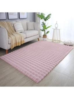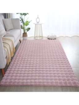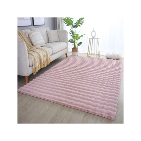 Långluggig matta, halkfri, enfärgad, rosa, mjuk och tvättbar, vardagsrumsmatta, bomullsbaksida, 100 % polyester, Lugghöjd: 25 mm, 1600 g (±5 %) m², bomullsbaksida