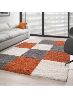 Mjuk, rufsig matta med rutmönster i terrakotta, grått och vitt. Lång lugg ger en mjuk och varm känsla varje dag. Perfekt för vardagsrummet eller sovrummet, lätt att integrera i en modern inredning.