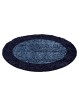 Mjuk, rufsig matta med en dekorativ marinblå kant. Dess långa lugg ger värme och komfort, perfekt för ett vardagsrum eller sovrum i en modern och mysig stil.