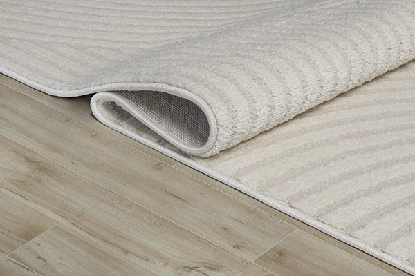 Denna moderna matta har en noggrant utformad texturerad yta, där böjda linjer och strimmiga områden möts för att bilda ett harmoniskt geometriskt mönster. Samspelet mellan djup skapar en elegant visuell effekt samtidigt som den bibehåller en lugnande atmosfär. Dess mjuka, strukturerade textur ger karaktär till ett vardagsrum, matsal eller sovrum utan att överbelasta utrymmet. Den exakta väven säkerställer utmärkt stabilitet och varaktig komfort för vardagligt bruk.