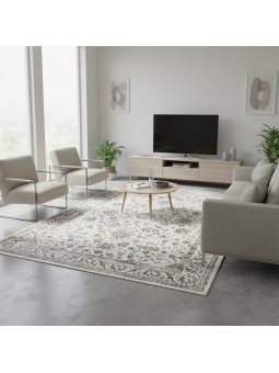 Denna klassiska krämfärgade matta har en rikt detaljerad, orientaliskt inspirerad design, bestående av en elegant central medaljong omgiven av blommiga ornament och fint tecknade traditionella motiv. Den dekorativa kanten ramar harmoniskt in kompositionen och understryker designens raffinerade karaktär. De mjuka nyanserna av kräm och brunt skapar en subtil kontrast som ger värme och elegans till rummet. Denna matta passar perfekt i ett vardagsrum, matsal eller sovrum och ger en tidlös touch till inredningen. Tack vare sin täta struktur och precisa väv erbjuder den en bekväm yta och utmärkt hållbarhet för vardagligt bruk.