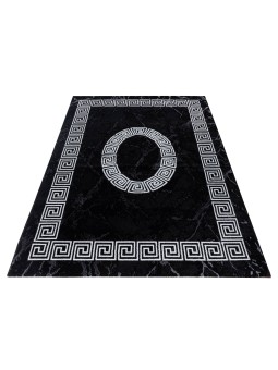Modern designmatta med svartvit optisk marmorkantprydnad