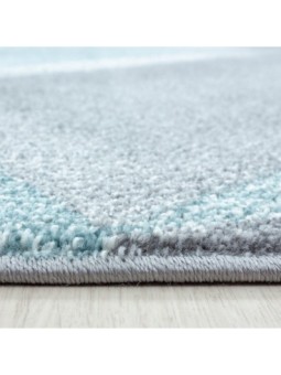 Kortluggig matta, geometrisk design, blå, vardagsrumsmatta, jutebaksida, 100 % PP-fris, lugghöjd: 10 mm, 240 000 stygn, 2200 g (±5 %) m², jutebaksida