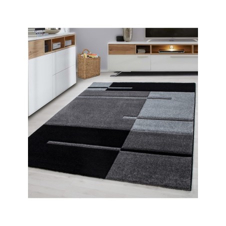 Kortluggig matta, rutmönster, grå, vardagsrumsmatta, jutebaksida, 100 % PP. Friese (Hund Carved), lugghöjd: 13 mm, 246 000 punkter, 2800 g (±5 %) m², jutebaksida