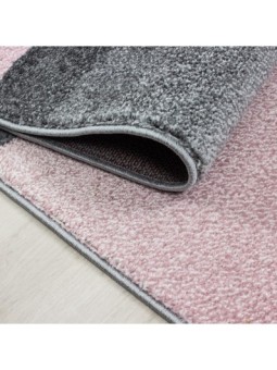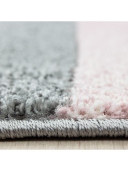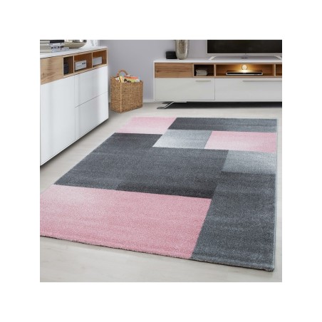 Kortluggig matta, rutmönster, rosa, vardagsrumsmatta, jutebaksida, 100 % PP. Friese, lugghöjd: 11 mm, 210 000 stygn, 2200 g (±5 %) m², jutebaksida