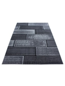 Kortluggig matta, stenmönster, svart, vardagsrumsmatta, jutebaksida, 100 % värmehärdad polypropen, lugghöjd: 6 mm, 249 000 punkter, 1400 g/m², jutebaksida