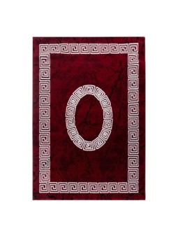 Kort luggmatta, meandermönster, röd färg, vardagsrumsmatta, jutebaksida