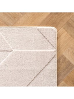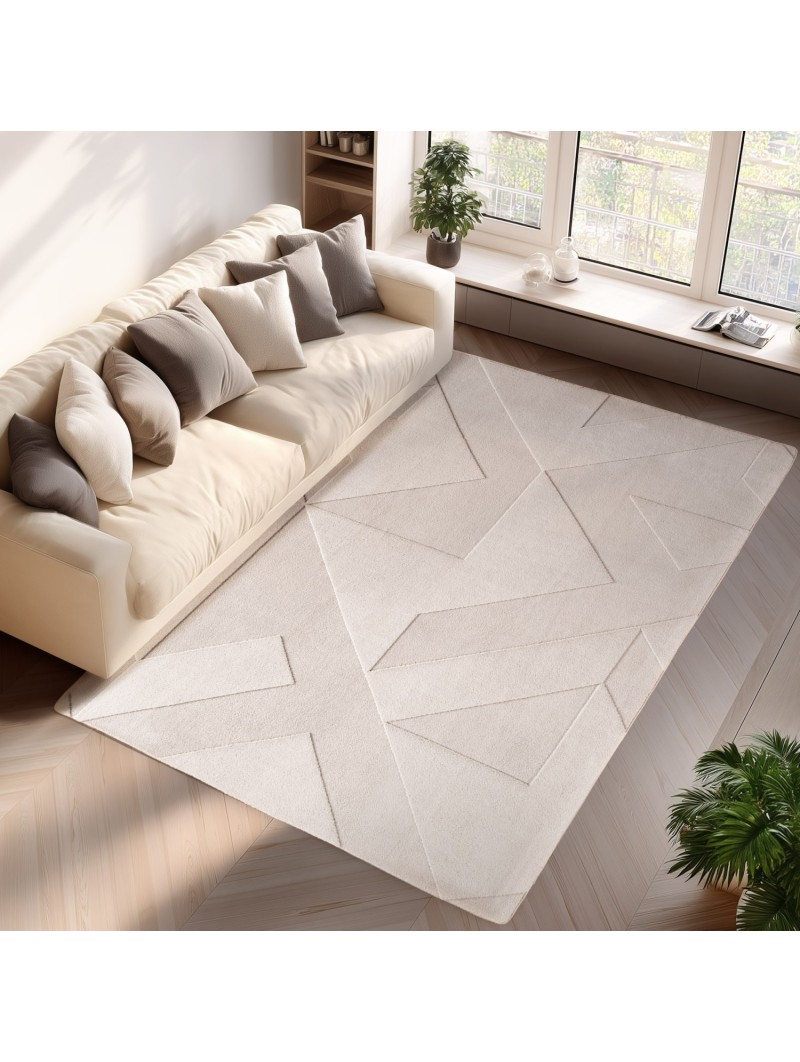 Bohemisk matta med geometriska mönster, enfärgad krämfärg, mjuk, lättskött, tvättbar, 3D-effekt för vardagsrum och sovrum, 100 % mikrofiber, lugghöjd: 12 mm, 1150 g/m², bomullsbaksida