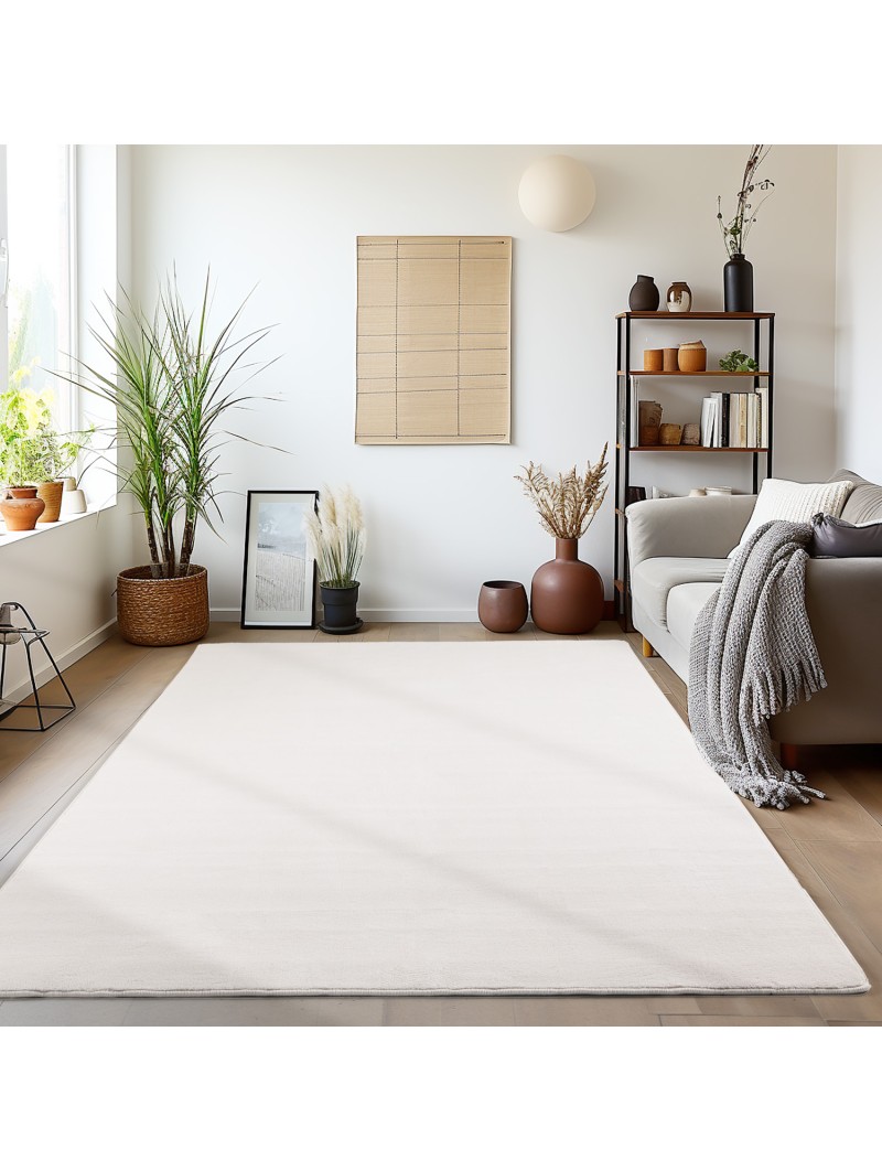 Kort luggmatta, Krämfärgad, Vardagsrumsmatta, Halkfri baksida, 100 % mikrofiber, Lugghöjd: 7 mm, 1300 g (±5 %) m², Filt/halkfri baksida
