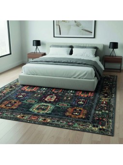 Denna matta, med sin omgjorda kelimdesign, sticker ut med sina mångfärgade orientaliska motiv på en modern antracitfärgad bas. Dess blandning av chenille och bomull ger mjukhet, komfort och hållbarhet i vardagen. Tack vare digitaltryck i hög upplösning förblir detaljerna skarpa och livfulla över tid. Med en halkfri baksida och kompatibilitet med golvvärme är den perfekt för vardagsrummet, sovrummet eller hallen. En touch av karaktär för en modern och inbjudande inredning.