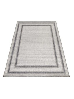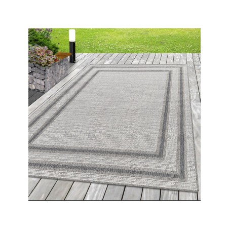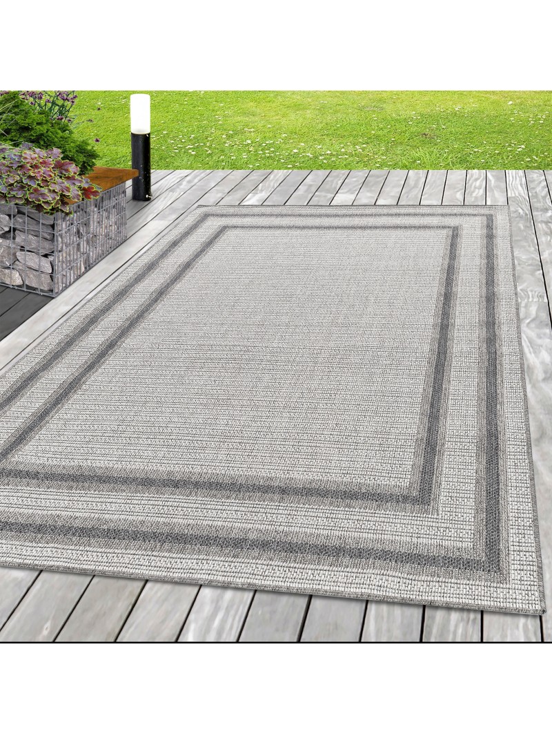 Utomhusmatta i sisal med rotting-look, beige och krämfärgad matta med dubbelkantmönster.