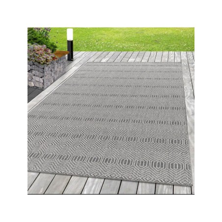 Matta för inomhus- och utomhusbruk, grå matta med sisal-look och hologrammönster