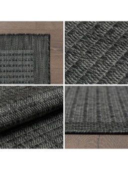 Utomhusmatta, enfärgad, svart, lämplig för uteplatser, balkonger och kök, med polypropenbaksida, 100 % värmehärdande frityr, 3 mm lugghöjd, 76 800 punkter, 1100 g/m², polypropenbaksida