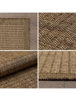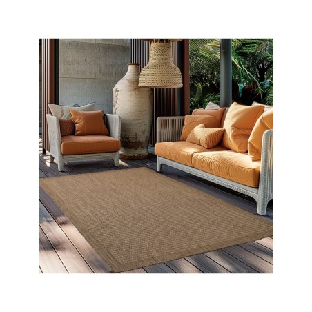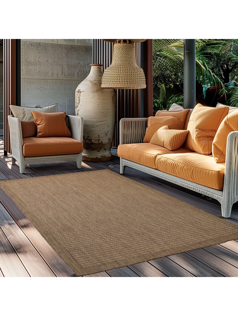 Utomhusmatta, enfärgad, brun, lämplig för uteplatser, balkonger och kök, med polypropenbaksida, 100 % PP-värmehärdande fritter, 3 mm lugghöjd, 76 800 punkter, 1100 g/m², polypropenbaksida