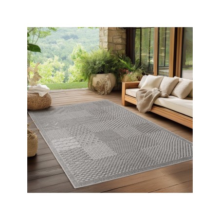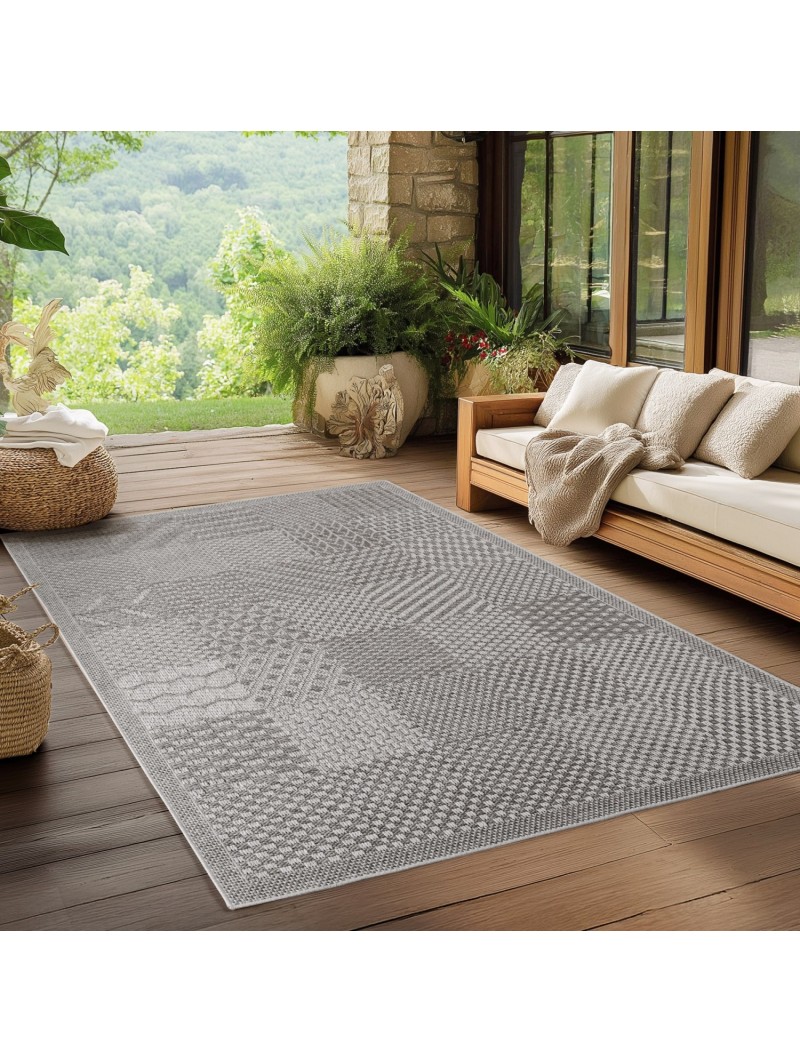 Grå matta för inomhus och utomhusbruk, väder- och UV-beständig, perfekt för kök, balkong, terrass, vardagsrum och matsal, enfärgad med bohemisk stil, 100 % polypropen, slätvävd, 1500 g (±5 %) m², splittrad garnbaksida