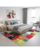 Soyut patchwork desenli ve 13 mm hav yüksekliğinde modern çok renkli halı.