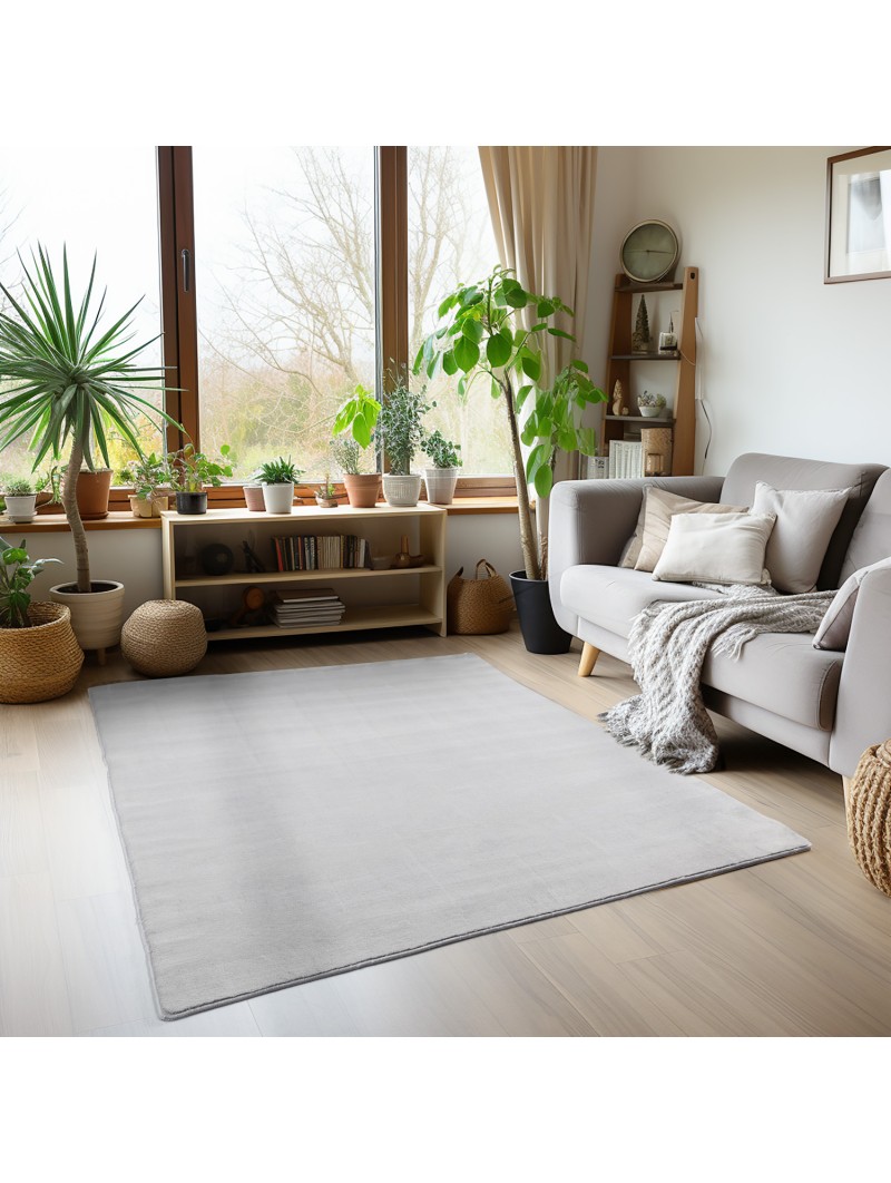 Kısa tüylü halı, Gümüş renk, Oturma odası halısı, Kaymaz taban, %100 Mikrofiber, Tüy yüksekliği: 7 mm, 1300 g (±5%)m², Keçe/kaymaz taban