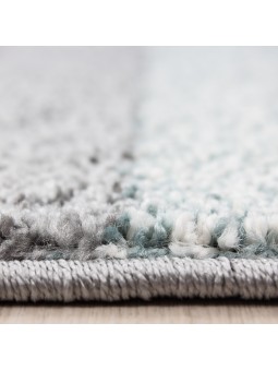Modern tasarımcı oturma odası halısı, kısa havlı, optik bloklu, gri/mavi
